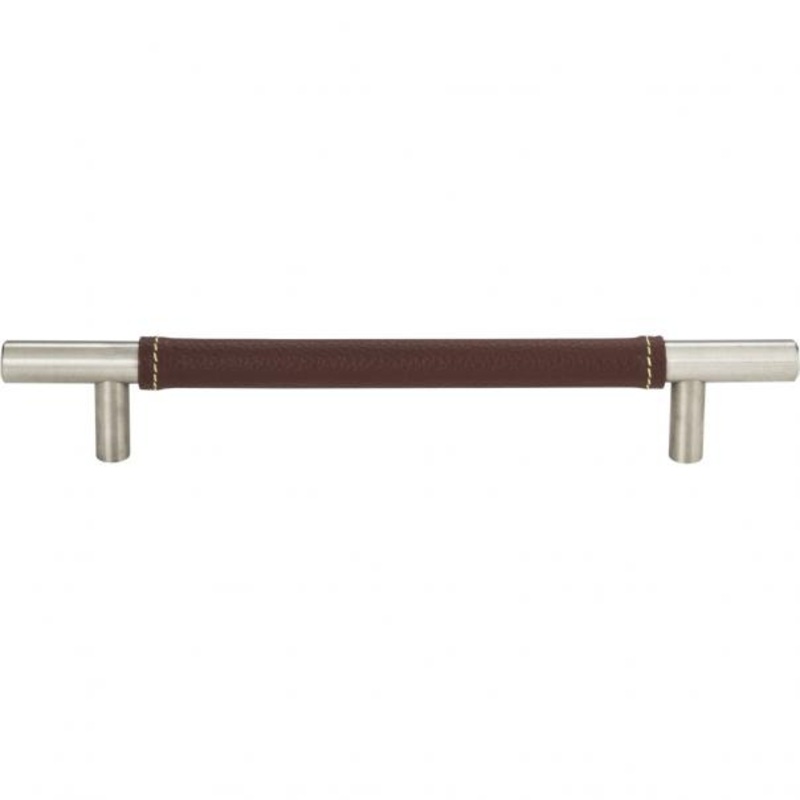 Atlas Homewares Zanzibar Brown Leather Pull 6 5/16 Inch (c-c) Brushed Nickel