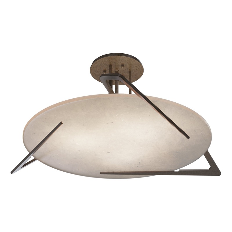 Elevate your space with the Callisto Semi-Flush light fixture. A large disc of softly glowing alabaster is held by three angled metal arms for a sophisticated aesthetic. Designer Ori Goldberg “wanted the softness of the alabaster stone to contrast with the metal in a clean, contemporary design.”