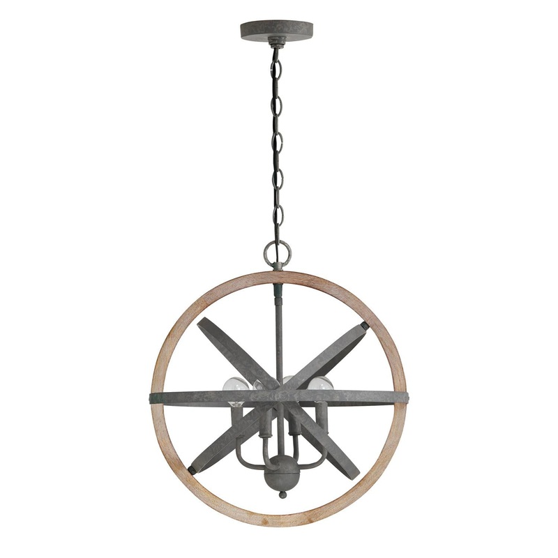 Artisan crafted with an industrial influence the orb silhouette of this 4-Light Pendant is all about the details. The natural mango wood paired with the dark bronze metal create a rustic look with a modern flair.