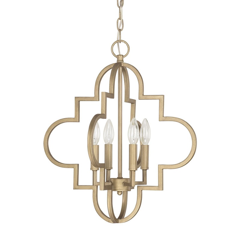 Add chic style to any transitional room with our Ellis 4-light small pendant. The chic quatrefoil motif in our elegant Brushed Gold adds a fashionable statement to kitchens small foyers stairways and more. The four candle-style lights go modern with the ad