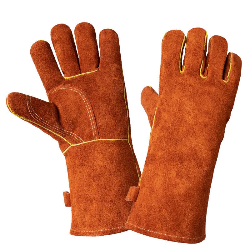 14-Inch Premium Leather BBQ Gloves - Heat-Resistant Up to 500C Product Description Protect your hands with these 14-Inch Premium Leather BBQ Gloves, expertly crafted for high-heat tasks. Made from durable cowhide leather with aluminum foil insulation, thes