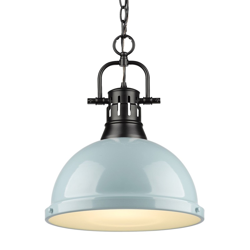 Duncan 1 Light Pendant with Chain in Matte Black with a Seafoam Shade