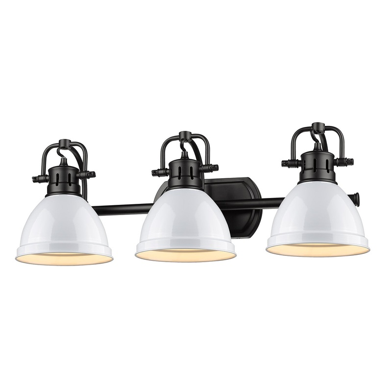 Duncan 3 Light Bath Vanity in Matte Black with a White Shade