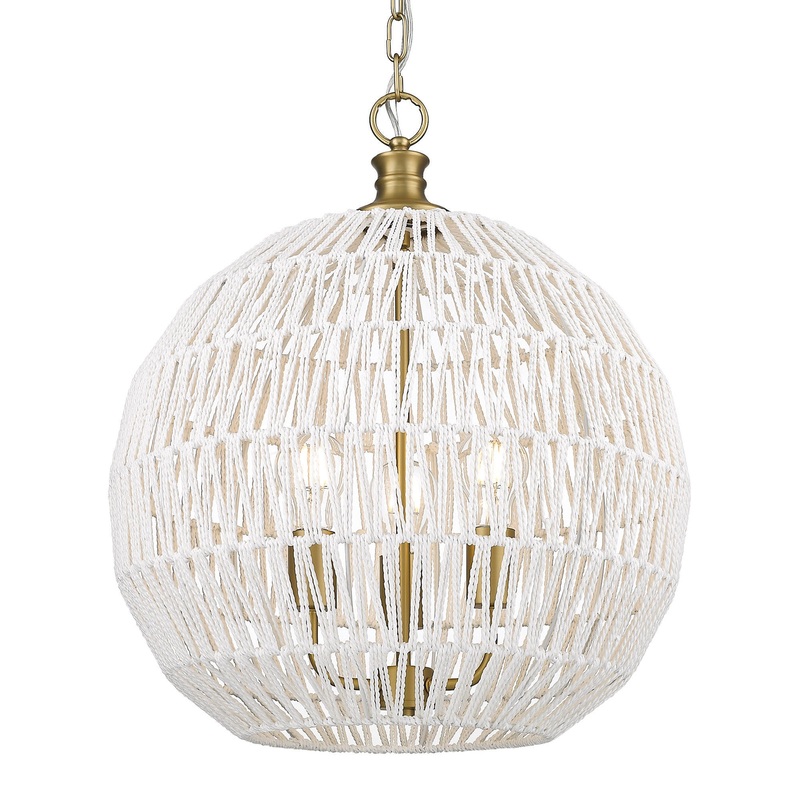 Florence 5-Light Pendant in Brushed Champagne Bronze and Bleached White Raphia Rope Shade