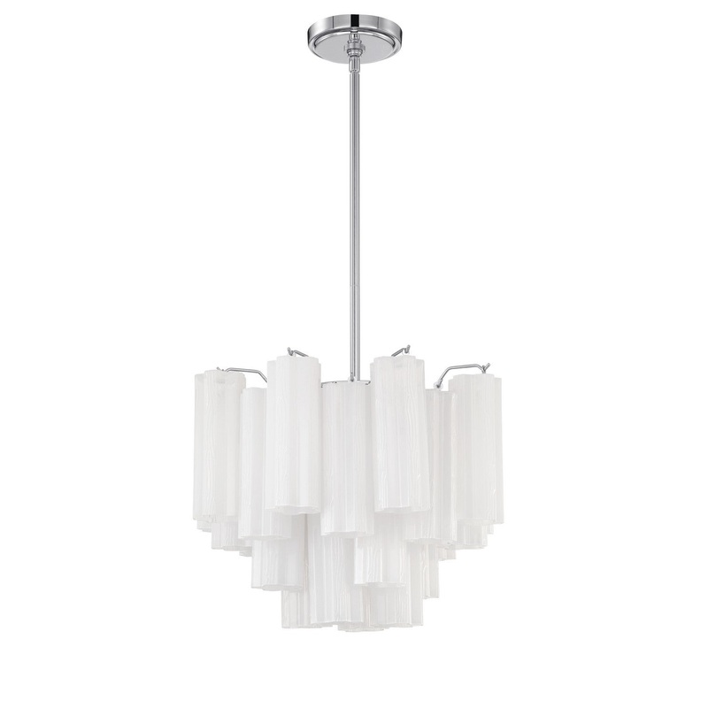 The captivating Addis Lighting Collection is a modern-day interpretation of the iconic mid-century Tronchi chandelier. Inspired by its predecessor’s sleek lines and geometric shapes, the Addis features a polished Chrome or Aged Brass metal frame that exudes sophistication and style. Its unique design showcases transparent tiers of textured Tronchi glass tubes, forming a mesmerizing 5-point rounded star shape. Choose from a range of glass colors, including clear, amber, smoke, and white, or the stunning Autumn option, which features a captivating multicolor disposition of amber, clear, and smoke Tronchi glass. The Addis Lighting Collection offers various sizes and finishes, allowing you to find the perfect fit for your space while adding a touch of timeless elegance.