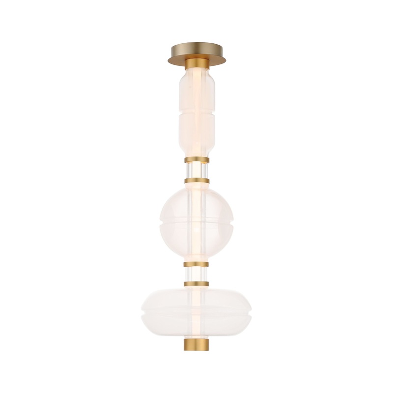 Futuristic and full of Gusto, the capsule collection designed by Cesar Giraldo features artisanal hand-blown glass elements colored in cloud-like white infused glass or gradients of smoked grey and warm amber tones. The glasses’ hand-crafted dimples refract dedicated LED lighting that highlights an undulating silhouette throughout the fixture. Diffused evenly across a thin tube of white acrylic encased within a larger vacuum of clear glass, the airy compositions appear to be floating while amply filling spaces. _x005F