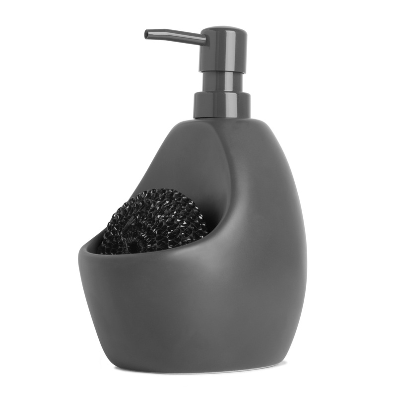 The sleek and modern-looking design of Joey Soap Pump will be a great addition to any countertop either in your kitchen or bathroom. Joeys built-in caddy keeps your kitchen essentials like a scrubby (included) neatly organized, while at the same time offer
