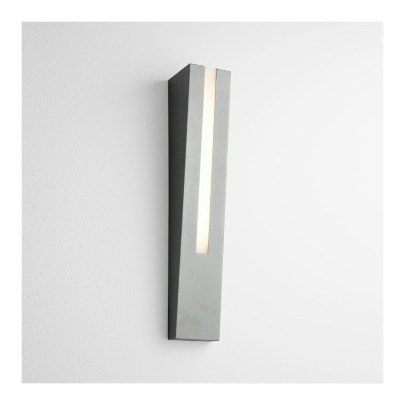 The uniquely angled and tapered shape of the Karme LED outdoor wall sconce brings an edgy, dynamic look to your exterior spaces. The cast aluminum frame is designed to withstand the elements while providing a stylish base for the energy-efficient light source which shine through the long acrylic covered slit that runs down the face of the frame.