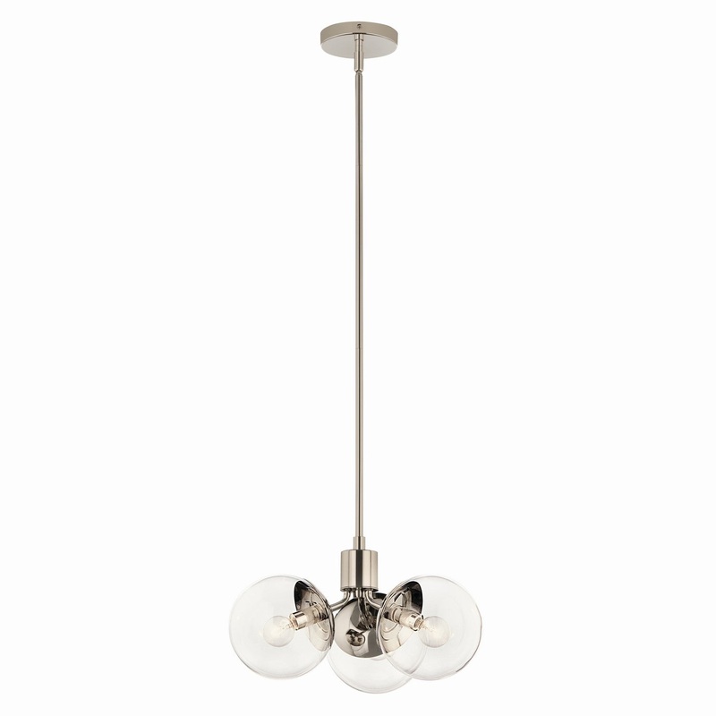 Inspired by frozen grapes, the Silvarious convertible pendant will capture the hearts of family and friends. Gathered at the center, its arms branch out with sparkling globes at the end, for a simple, yet playful design. Its clear glass beautifully illuminates against its polished nickel finish.