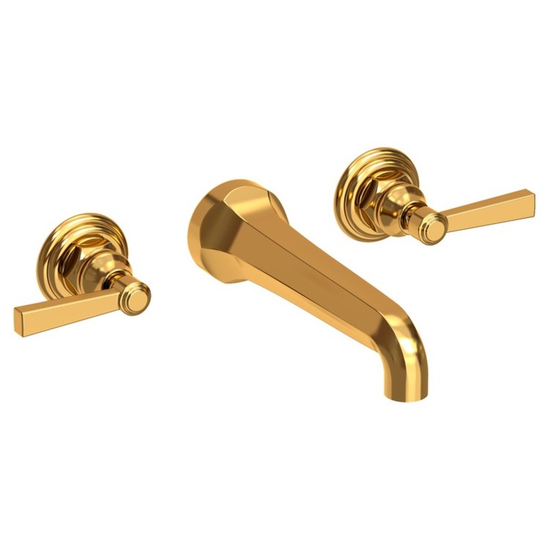 Lavatory Faucet Astor Wall Mount 8 Inch Spread 2 Lever ADA Watersense Aged Brass 1.2 Gallons Per Minute Brass Less Drain Spout Reach 7-1/2 Inch