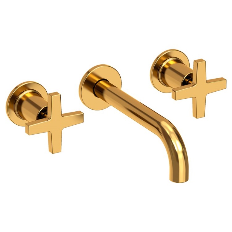 Lavatory Faucet Dorrance Wall Mount 8 Inch Spread 2 Cross ADA Watersense Aged Brass 1.2 Gallons Per Minute Brass Less Drain Spout Reach 7-1/9 Inch
