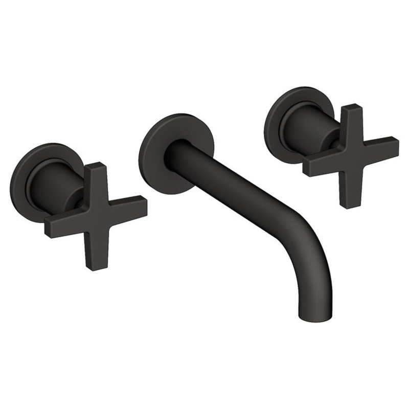 Lavatory Faucet Dorrance Wall Mount 8 Inch Spread 2 Cross ADA Watersense Flat Black 1.2 Gallons Per Minute Brass Less Drain Spout Reach 7-1/9 Inch