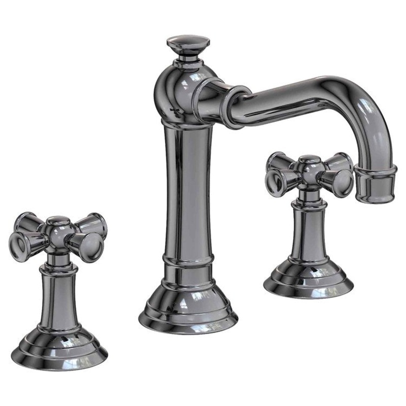 Lavatory Faucet Jacobean Widespread 8 to 20 Inch Spread 2 Cross ADA Midnight Chrome 1.2 Gallons per Minute Brass Spout Height 4-13/16 Inch