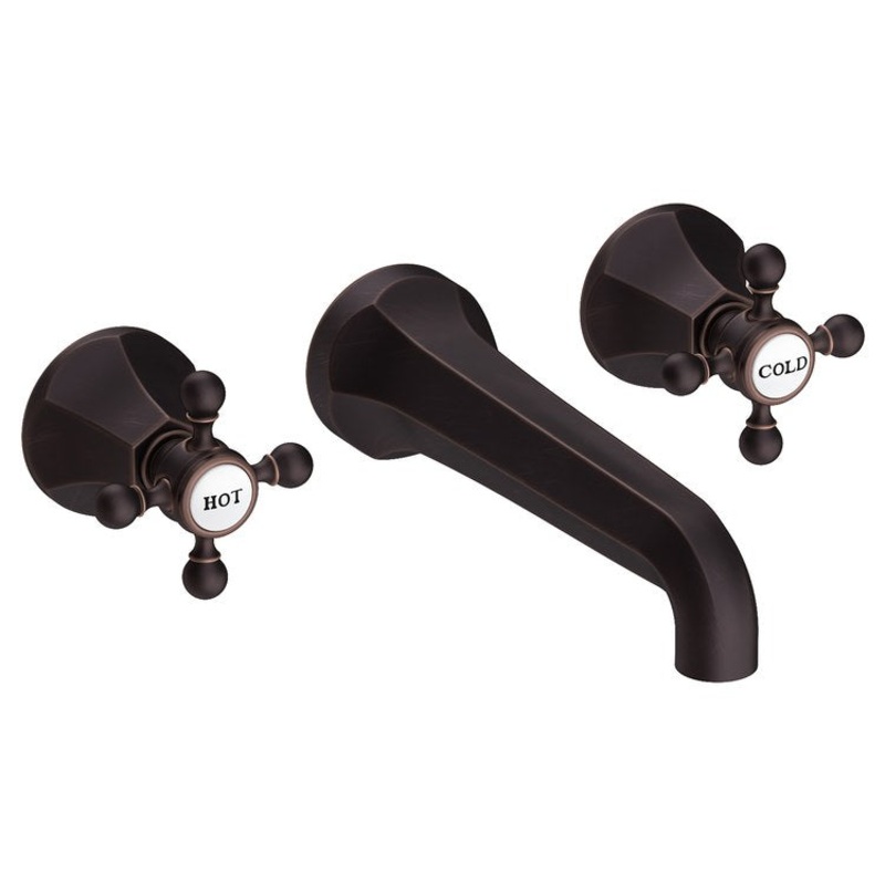Lavatory Faucet Metropole Wall Mount 8 Inch Spread 2 Cross ADA WaterSense Venetian Bronze 1.2 Gallons Per Minute Brass Less Drain Spout Reach 7-1/2 Inch