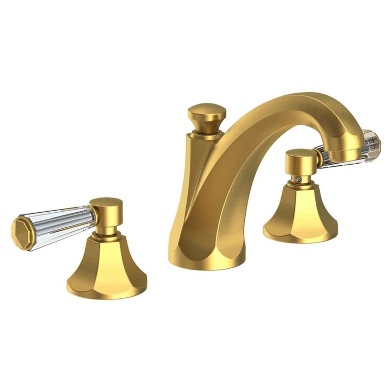 With its distinctive, sculpted lines and detailed fluting, the Metropole collection from Newport Brass exudes a warm and casual elegance. This two-handle widespread bathroom faucet features brass valve bodies, decorative crystal lever handles, a high-arc s