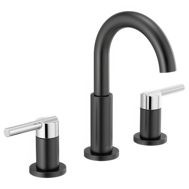 Lavatory Faucet Nicoli Widespread 6 to 16 Inch Spread 2 Lever ADA WaterSense Matte Black/Chrome 1.2 Gallons per Minute Deck Mount Pop-Up 3 Hole
