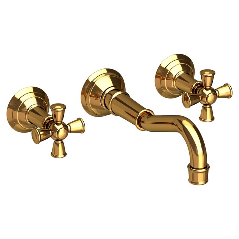Lavatory Trim Jacobean Wall Mount 2 Cross Polished Gold PVD ADA Low Arc 1.2 Gallons per Minute