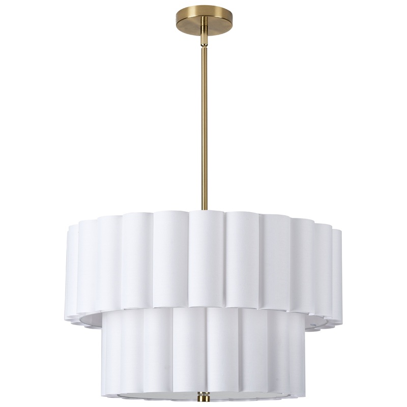 4 Light Aged Brass 2 Tier Pendant w/ White Scallop Shades