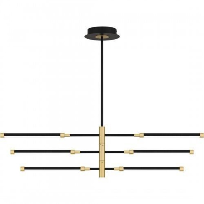 The Azalea light offers a fresh, sleek interpretation of Sputnik-style designs. With an integrated LED light source, this island light casts a continuous glow amid a sculptural, geometric silhouette. A matte black finish includes subtle gold flourishes tha
