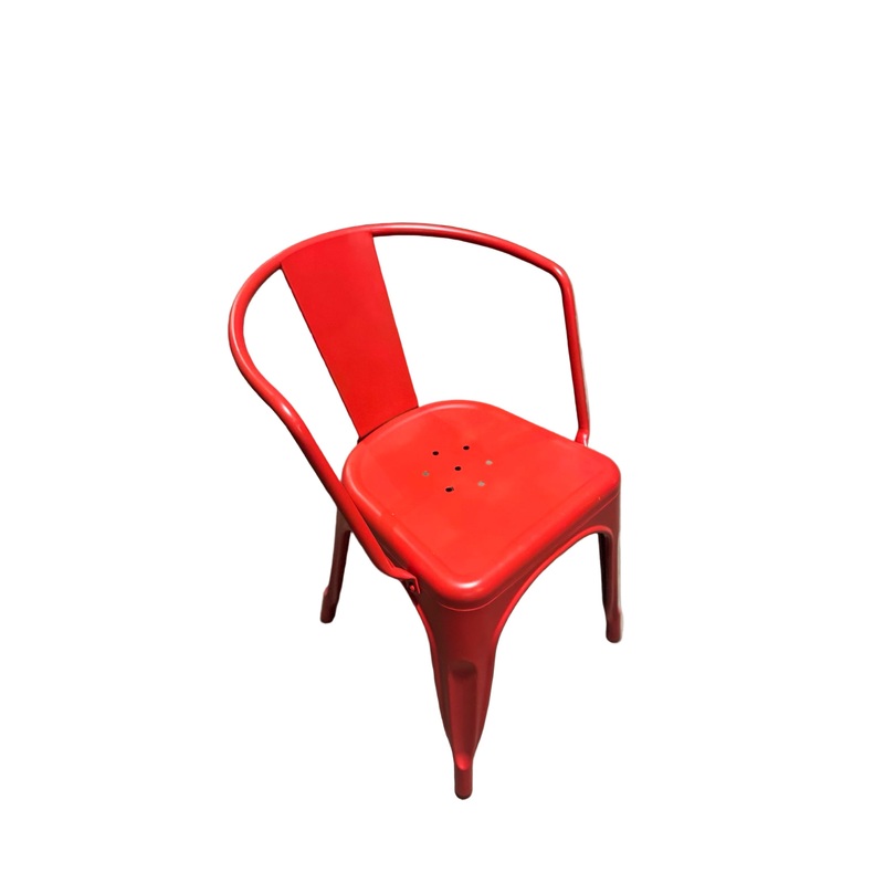 This vibrant red industrial-style metal chair is perfect for kitchens, cafs, patios, or accent seating. Sturdy and lightweight, its easy to move yet built to last. Its bold color adds a pop of style to any space.Whether you need extra seating for guests or