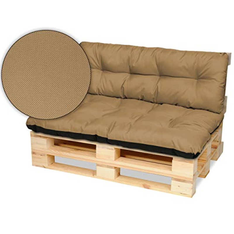 SuperKissen24. Cuscino per Bancale Divano Pallet 120×80 cm con Schienale 120×38 cm Seduta Impermeabile e Comodo per Divanetti da Esterno – Beige