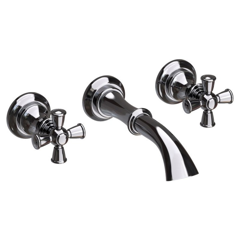 Sutton Two Handle Wall-Mount Bathroom Faucet with Cross Handles – Midnight Chrome