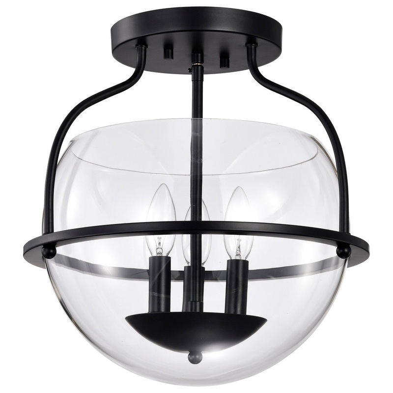 Amado 3 Light Semi Flush Mount, Matte Black Finish, Clear Glass