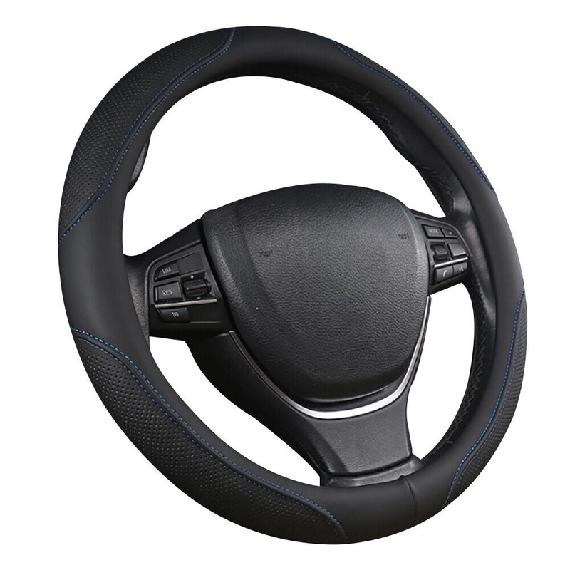 Universal Luxury Car 37-38cm Steering Wheel Cover PU Leather Non-slip Breathable (Black-blue)